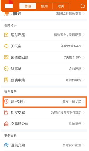 登录东方财富证券App,进入交易界面,上拉后进入账户分析: